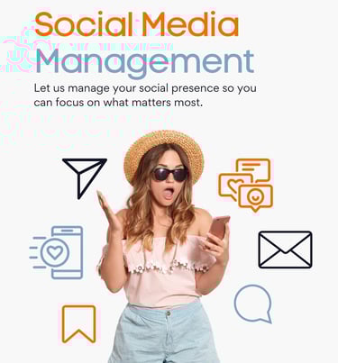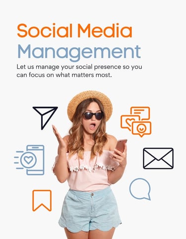 Social Media Management: We take over your social channels (Instagram, Facebook, TikTok, LinkedIn) with a consistent, brand-focused strategy that increases followers and engagement.