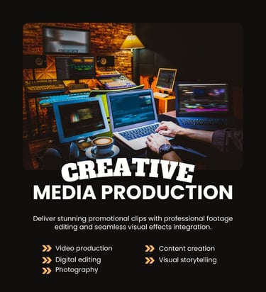Professional Photography & Videography for Marketing: Powerful visuals are key. We create stunning product photos, brand videos, and behind-the-scenes content that authentically represents your brand.